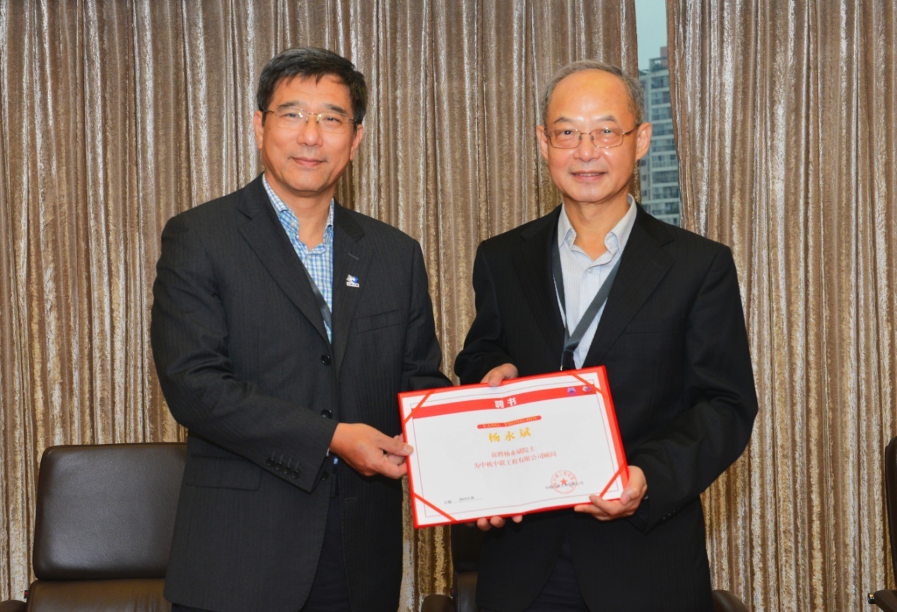 雙方簽訂了《特聘院士楊永斌擔任顧問總工程師服務(wù)協(xié)議》,中國聯(lián)合工程有限公司副總經(jīng)理韓偉向楊永斌院士頒發(fā)聘書。最后,楊永斌院士發(fā)表了熱情洋溢的講話,對受聘于公司特聘顧問榮譽表示感謝,對中機中聯(lián)近年來的發(fā)展表示祝賀,并承諾將竭盡全力,為公司的發(fā)展做出更大的貢獻。