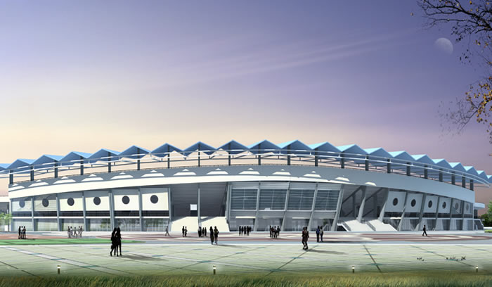 建設(shè)規(guī)模:項(xiàng)目體育館、體育場及游泳館各一座,其中體育館為2988座、體育場為20000座、游泳池輔房為700座.總建筑面積為25480m2。